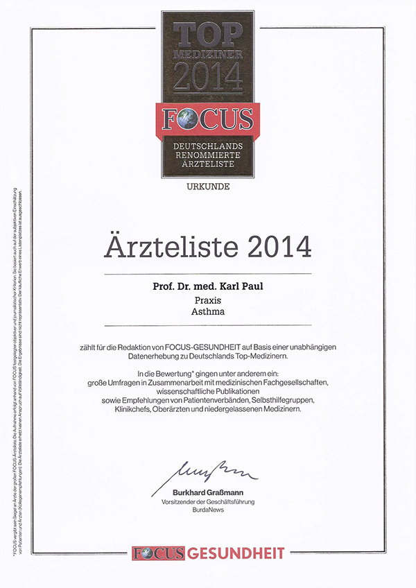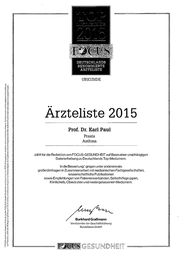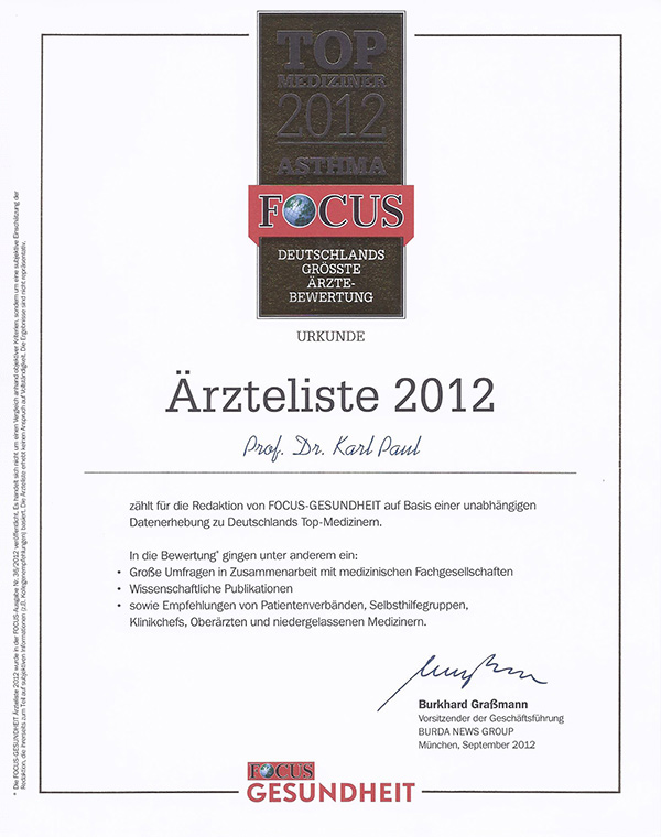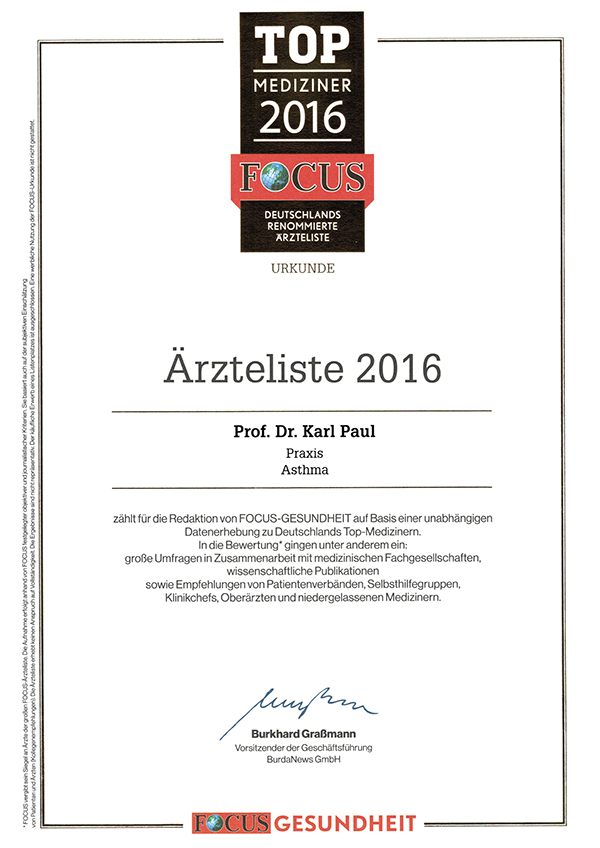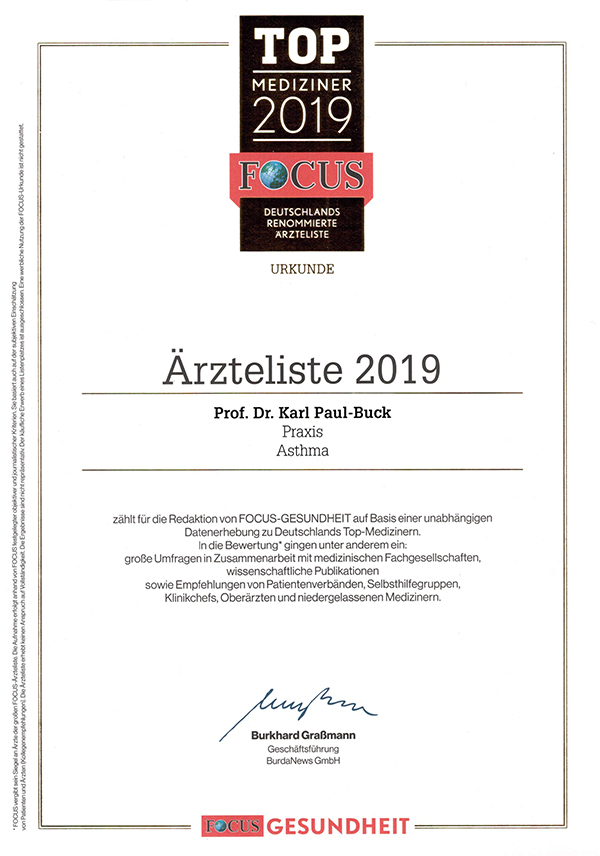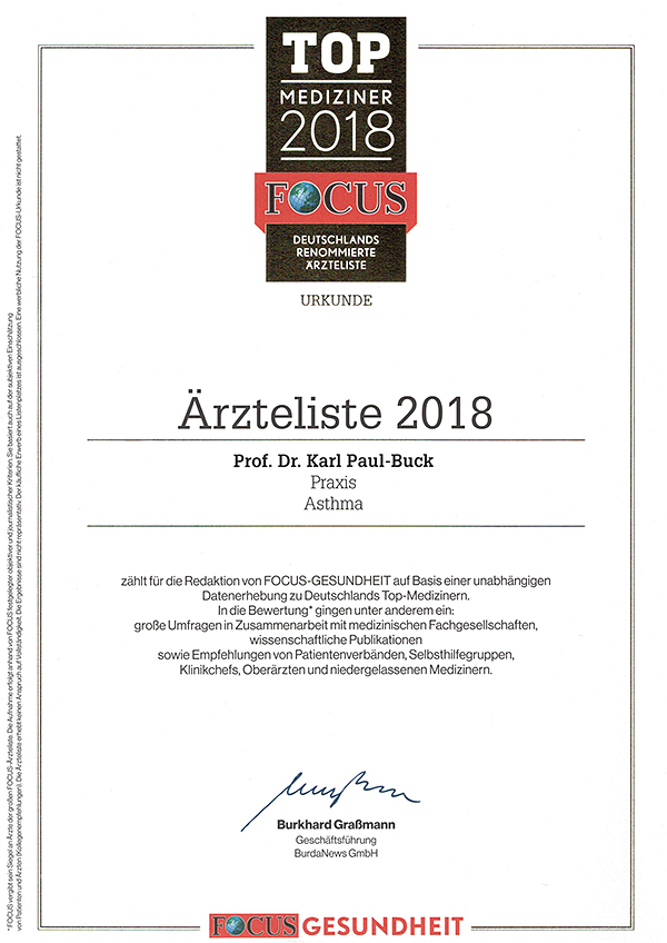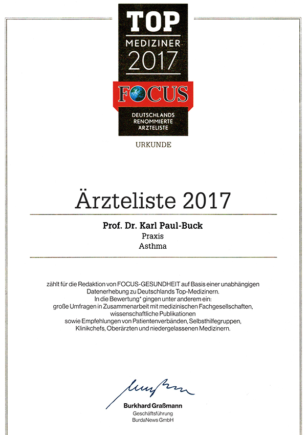 Praxis Dr. Dr. Buck in Potsdam SUMMER SCHOOL 2018 Auszeichnungen der Redaktion FOCUS-GESUNDHEIT Empfohlene Lektüre für Patienten Wichtige Publikationen und Lehrbuchbeiträge: Veröffenlichungen zum Thema Asthma Weitere Informationen: Mitgliedschaft in Fachgesellschaften |